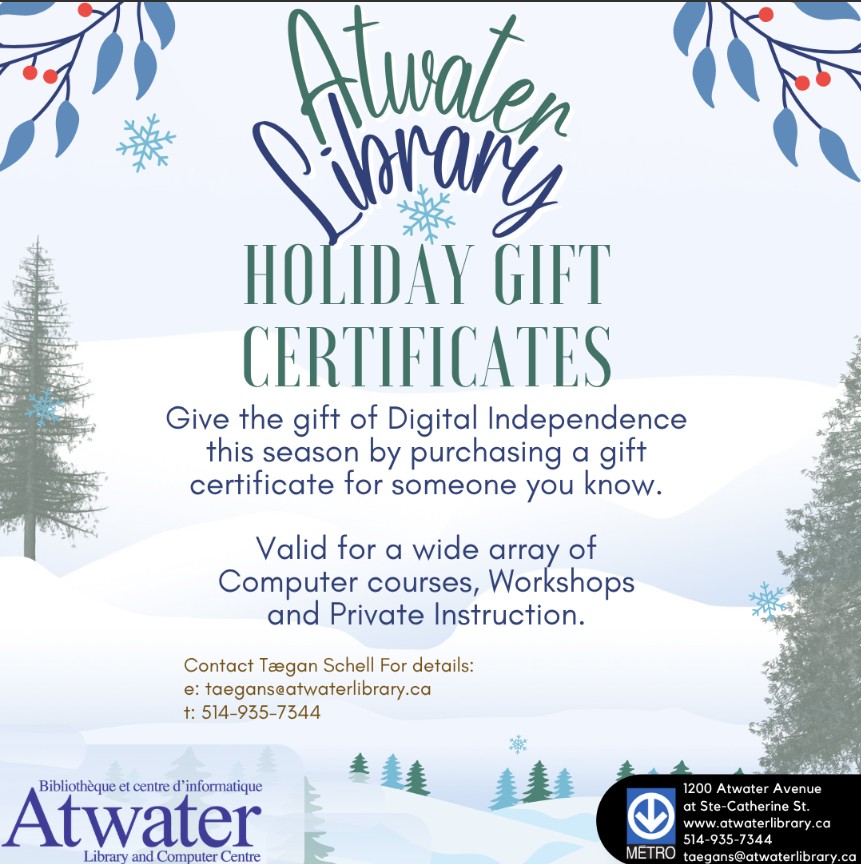 For more information about our Financial Literacy Program, please email lverge@atwaterlibrary.ca.