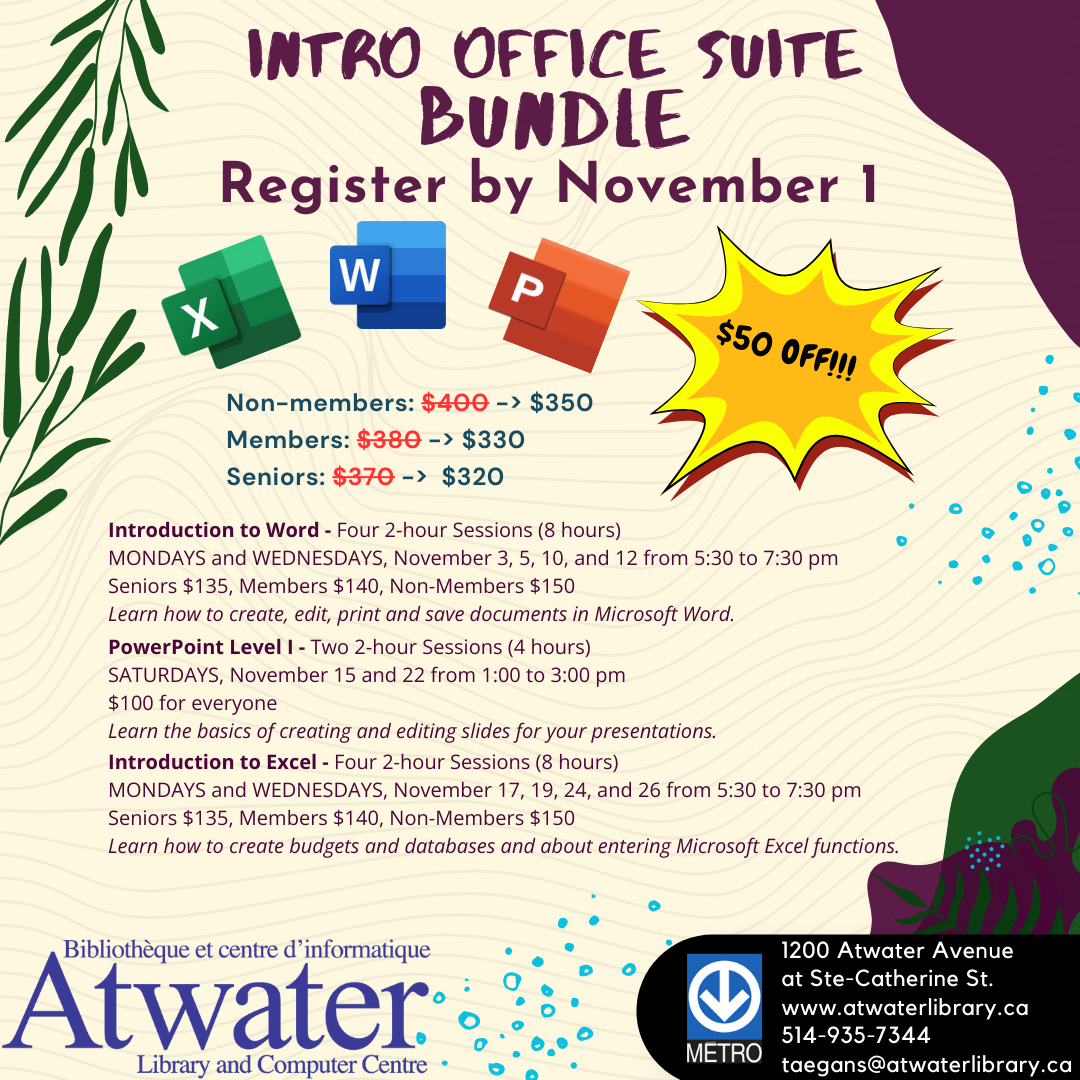 For more information about our Financial Literacy Program, please email lverge@atwaterlibrary.ca.